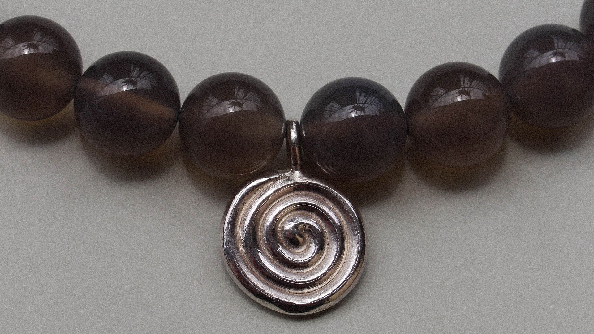 Tahuna Collective - Beaded Necklace - Taupe Grey Agate & Eddy Swirl