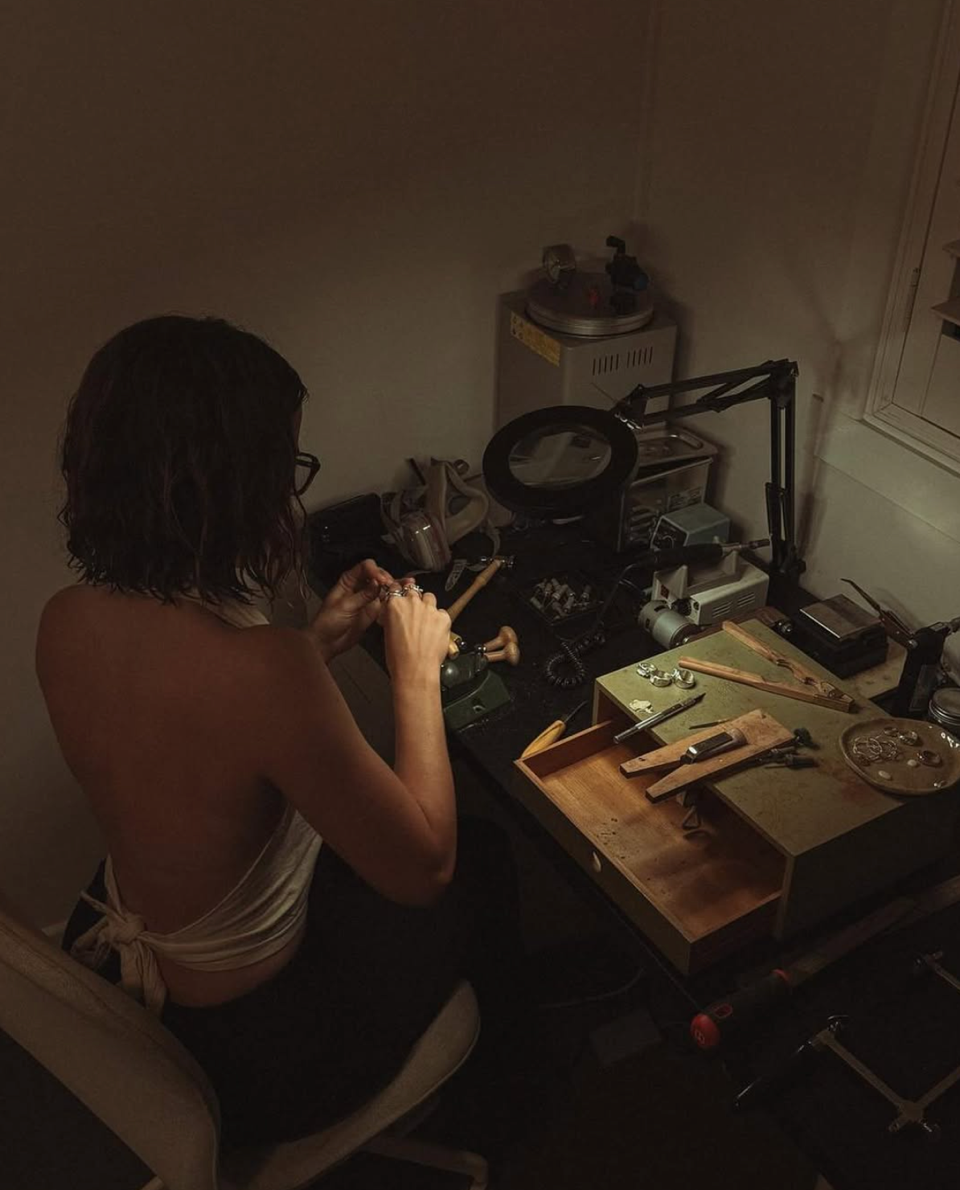 You work with silver, lost-wax casting, and handcrafted beading. What led you to these materials, and what do you love about how they age and evolve? I work with recycled solid metals, mostly sterling silver and 9ct gold. I was inspired by my grandmother's rings, and frustrated by cheap plated metals in the market. I prefer materials that age with you, that can be repaired or re-polished, and that hold their value. Wherever I can, I thrift or repurpose materials too.The beaded necklaces bring in a different kind of energy. Stones and pearls allow me to play with new colours and textures, so arranging them feels intuitive and more relaxed than working in metal.