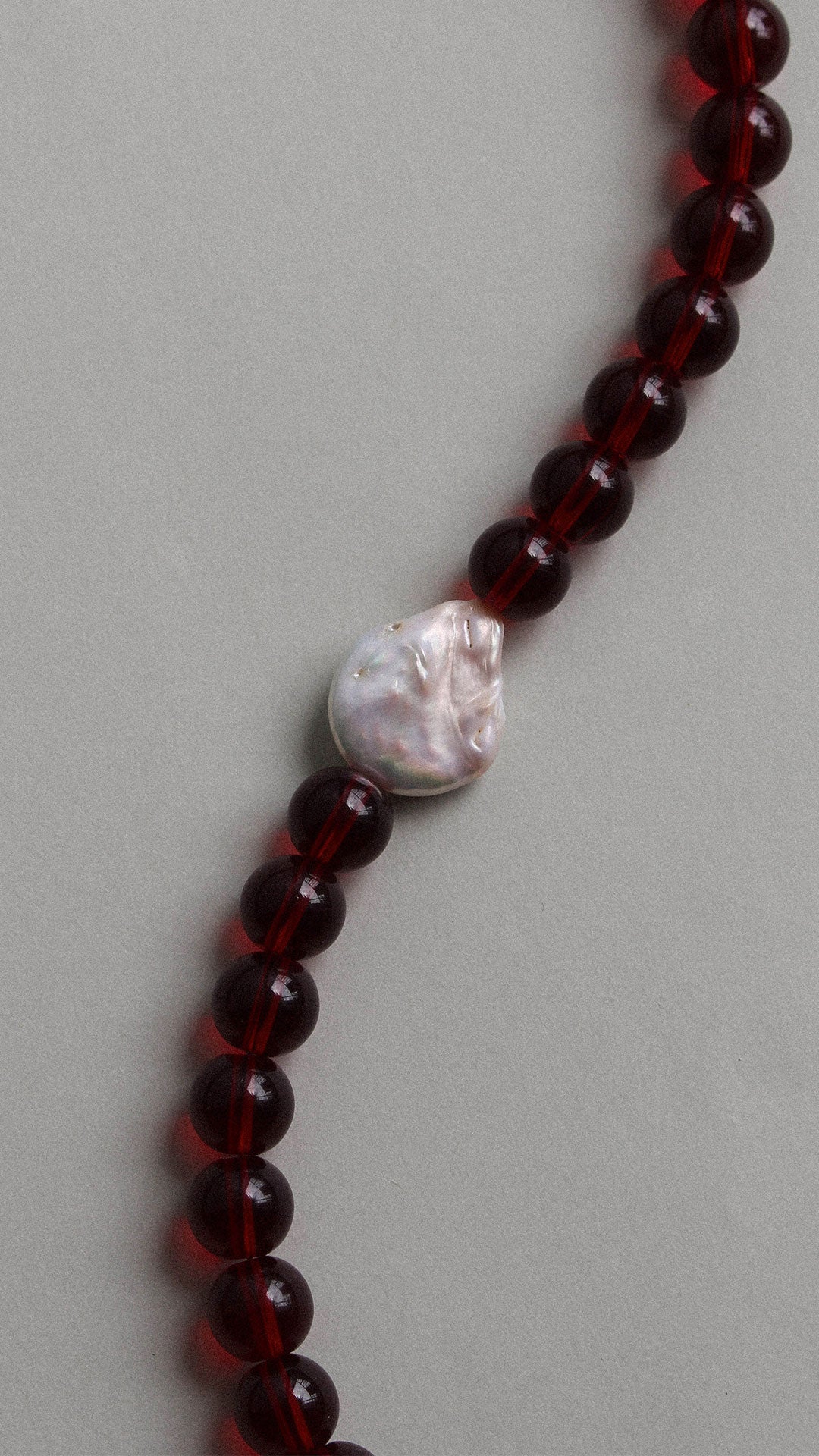 Tahuna Collective - Beaded Necklace - Red Garnet & Freshwater Pearl