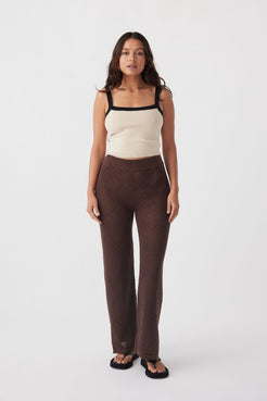 The Ezra Pant in Chocolate features a wide-leg, full-length design with side splits and an elastic waistband. Made from 100% organic cotton with an open-knit finish, it’s ethically produced and OEKO-TEX Standard 100 certified, ensuring a sustainable, chemical-free option for long-lasting wear.