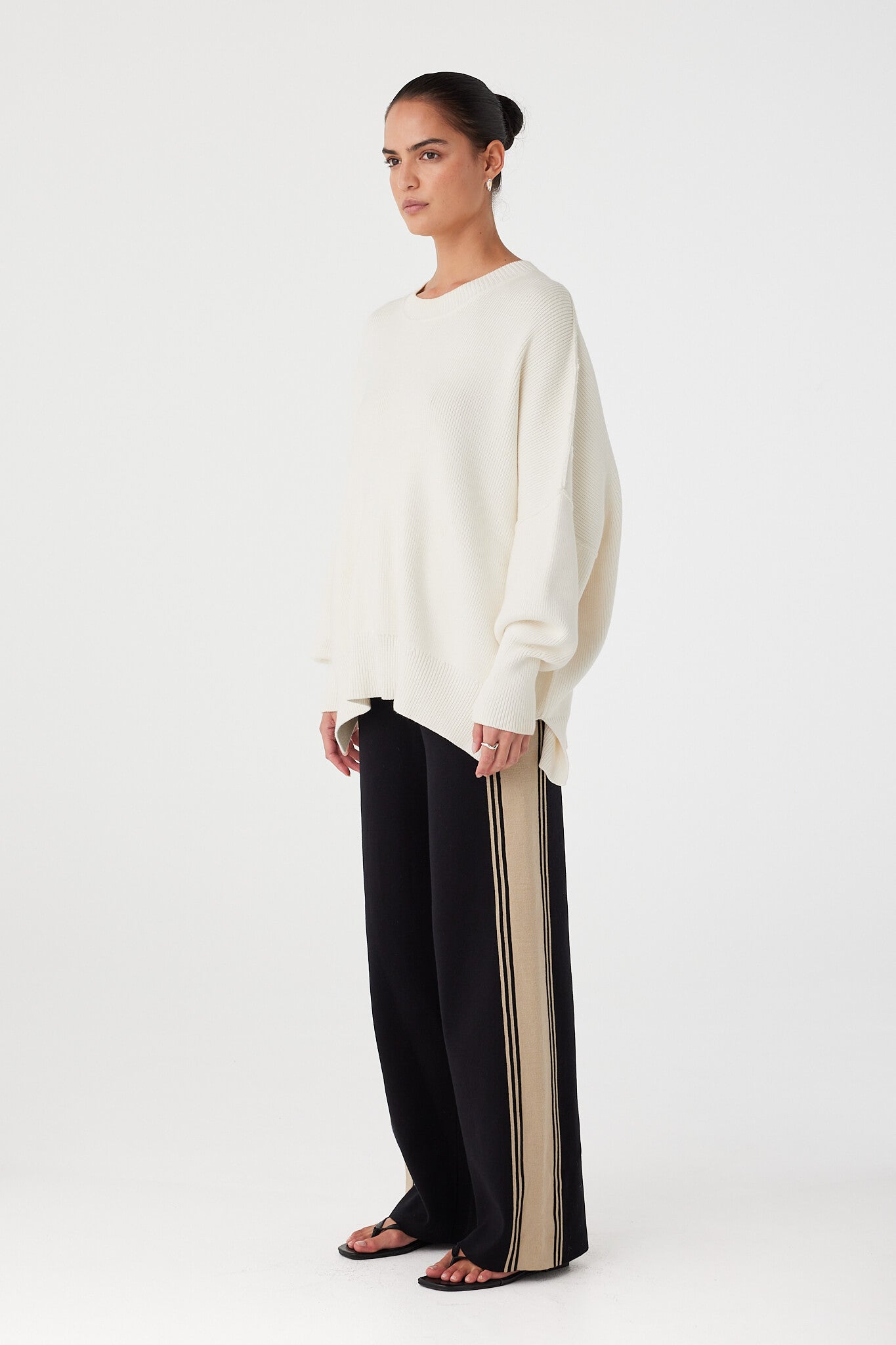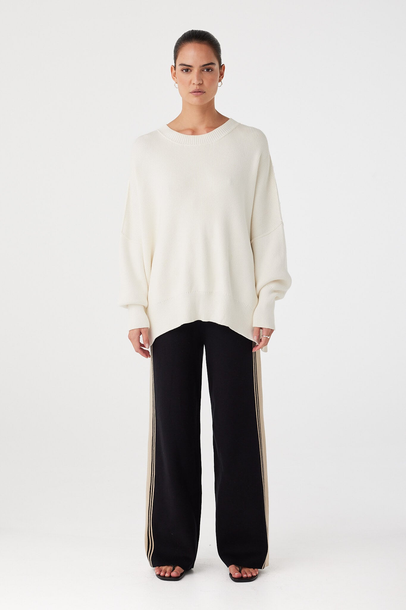 Minimalist and timeless. The Harper Knit Sweater in Cream has an oversized, slouchy fit with a wide crew neck for effortless drape. Designed for all-day ease, its soft and breathable knit offers a perfect balance of structure and movement.