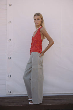 Relaxed in form and grounded in function. The Nara Pocket Pant in Taupe is cut with a gentle barrel leg and finished with front and side patch pockets for utility ease. The elasticated back waist and button–tie front closure allow for comfort and subtle structure. Designed for everyday wear and effortless transitions.