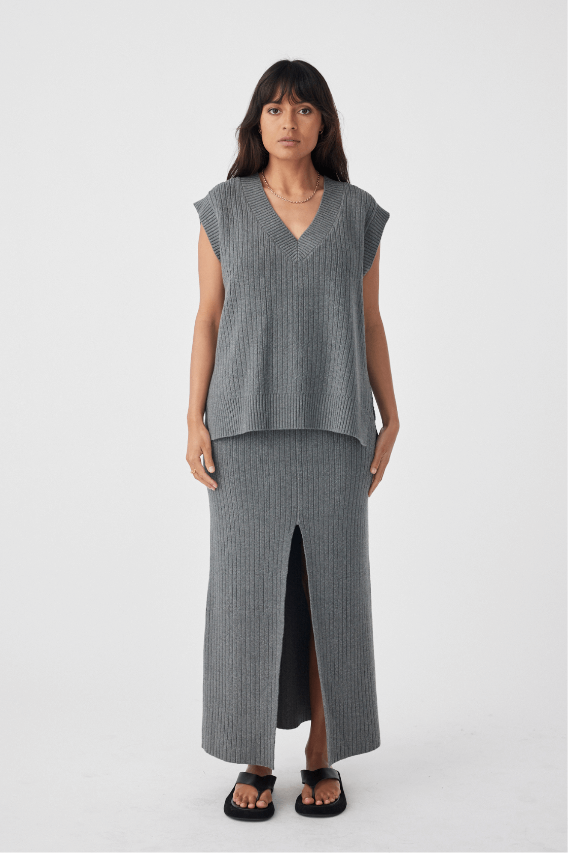 Vera Organic Knit Vest - Dark Grey Marle