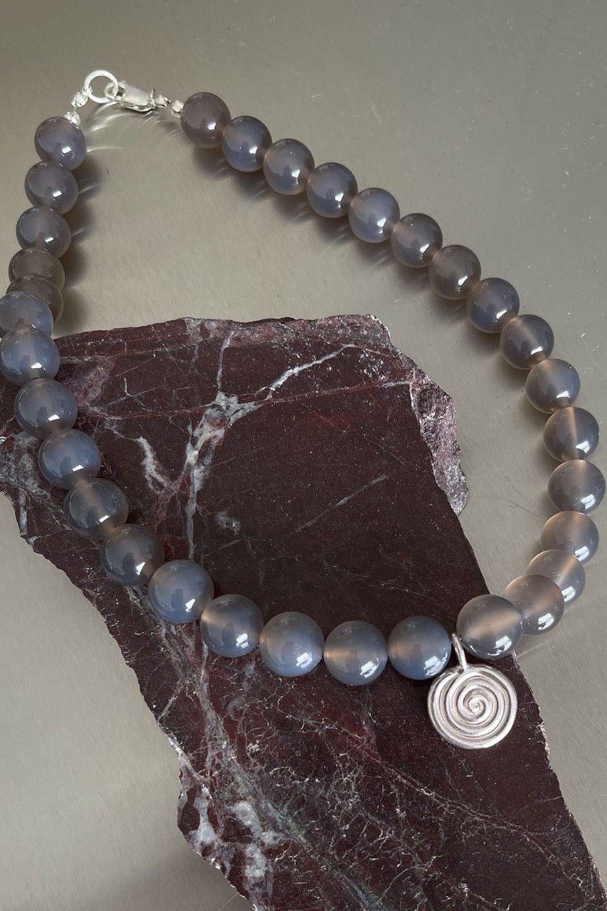 Tahuna Collective - Beaded Necklace - Taupe Grey Agate & Eddy Swirl