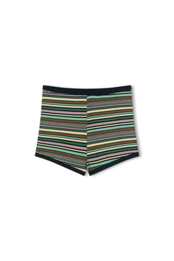 Knit mini shorts in 100% cotton with a custom Breeze stripe. Designed with a contrast waistband and hem and a close, comfortable fit. Soft and breathable for warm or humid days, easy to wear with simple tanks or over a swimsuit.