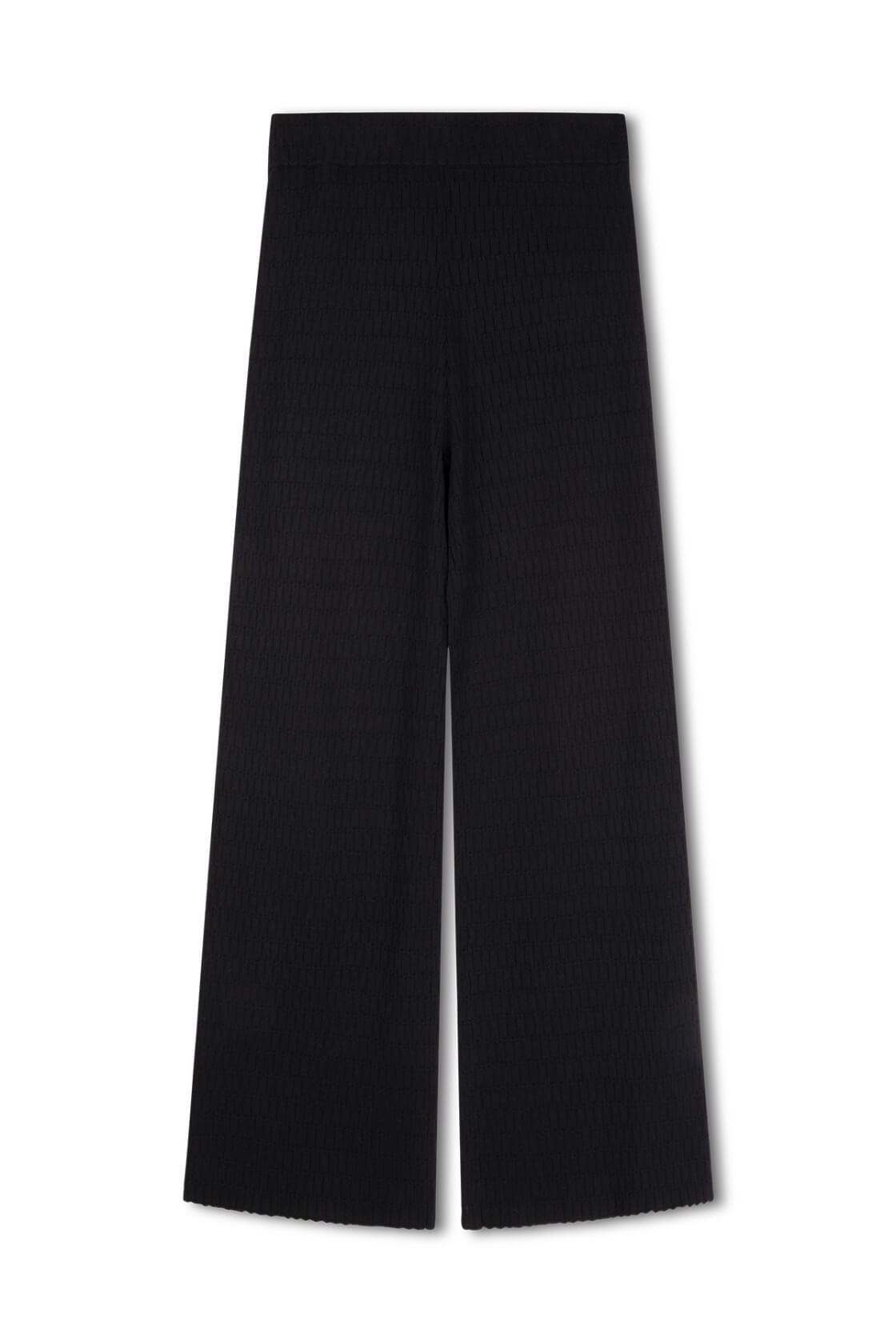Front view of Jade straight leg pants in black organic cotton with textured knit and clean silhouette.