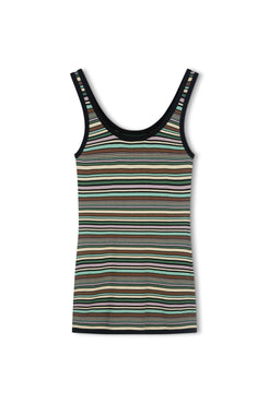 Sleeveless mini dress in 100% cotton knit with a custom Breeze stripe. Cut with a scoop neckline and a slim, body-ski...