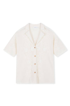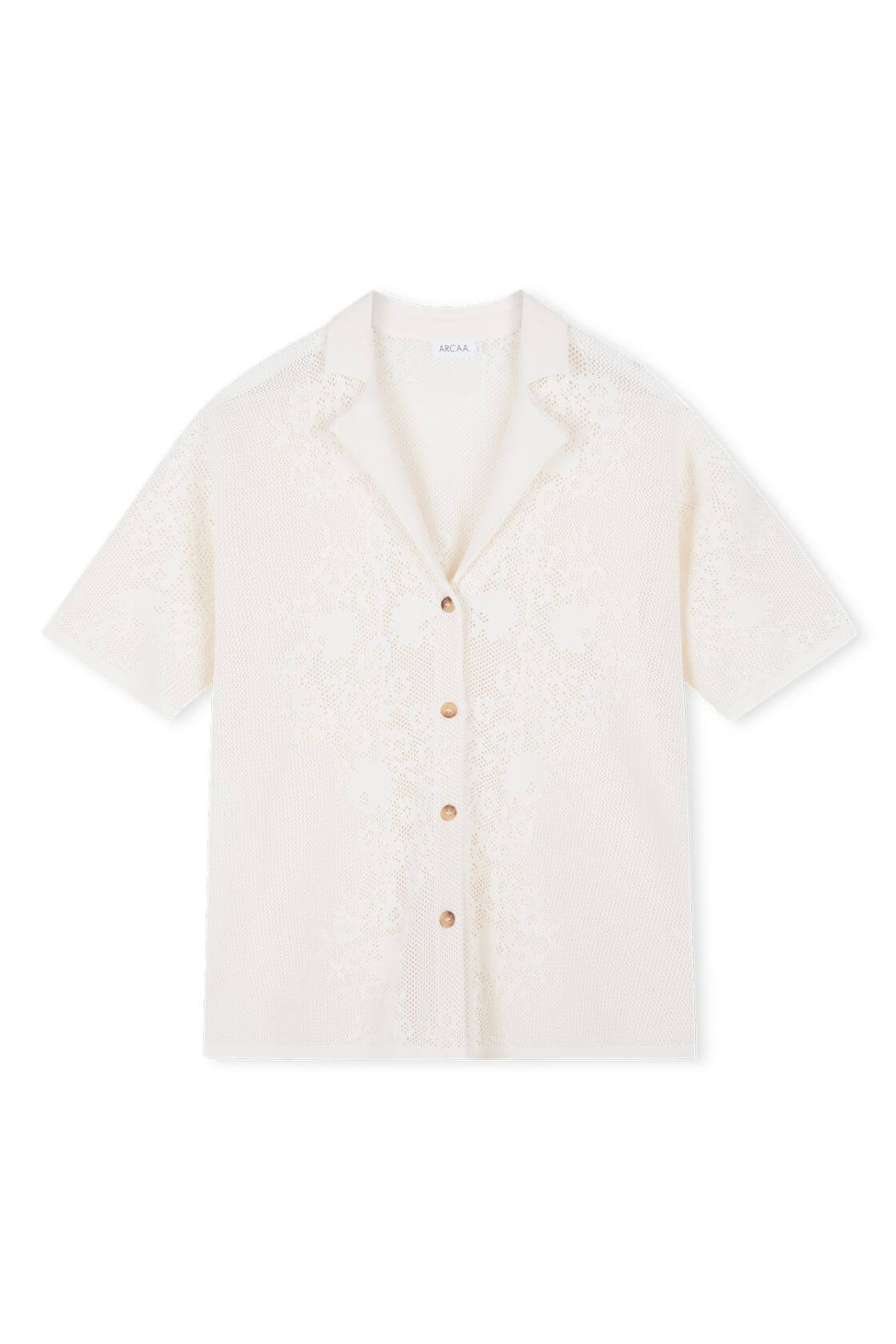 A refined short-sleeve shirt crafted in Arcaa’s custom in-house designed open crochet knit.