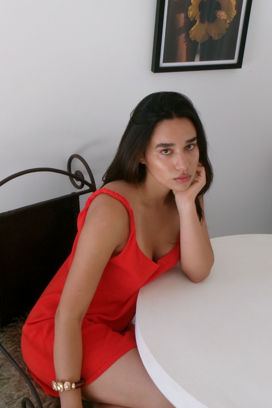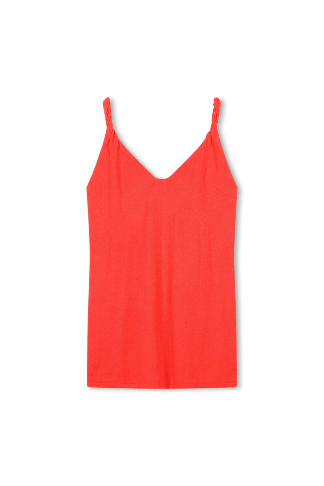 Crafted in a breathable hibiscus red linen–cotton blend, designed for sun-filled days and effortless summer ease.