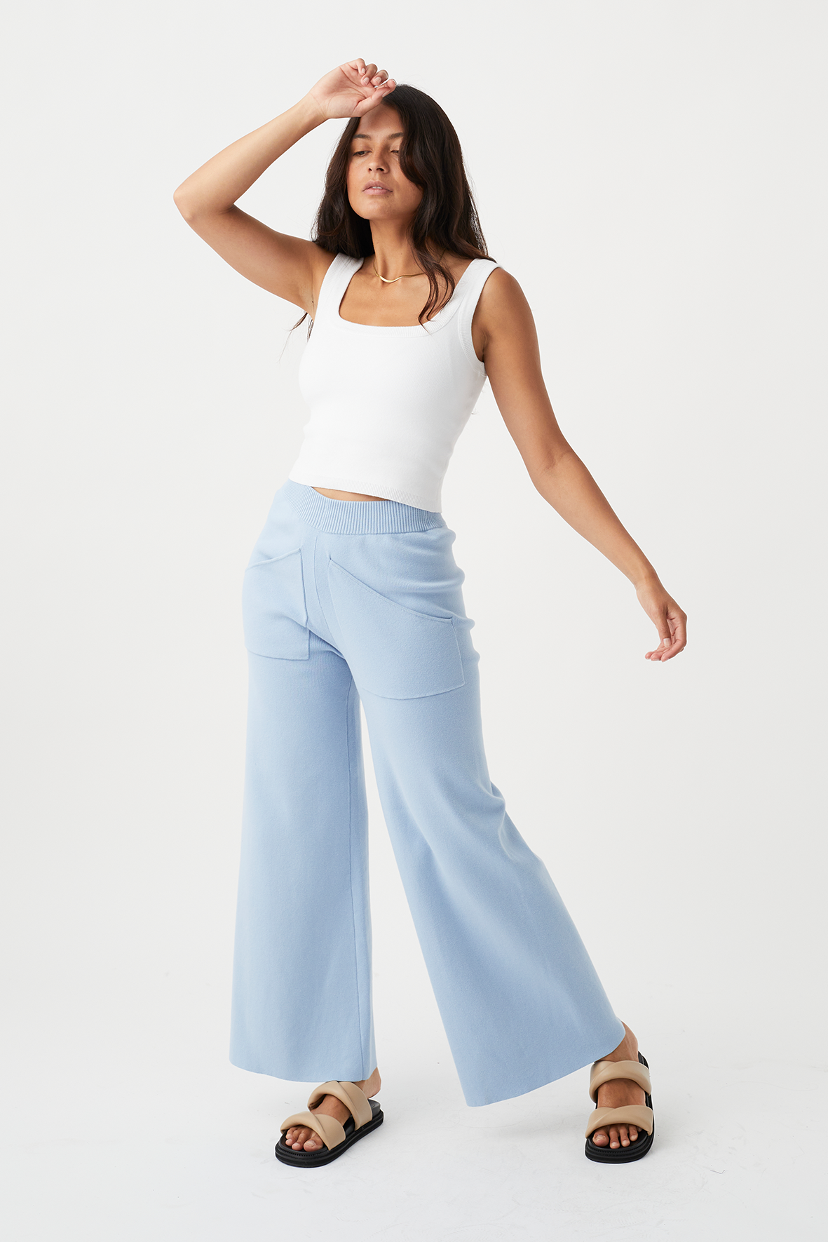 High rise Relaxed fit Wide leg Ribbed waistband Front pocket detail Ethically produced Free of harmful chemicals ...