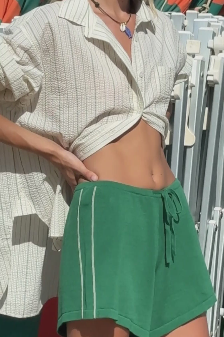 The Pippa Drawstring Short in Sea Green is a relaxed summer staple, designed with contrast side panel detailing and an adjustable drawcord waist. Crafted from a linen–organic cotton blend, it offers lightweight breathability and ease for warm-weather layering or coordinated sets.