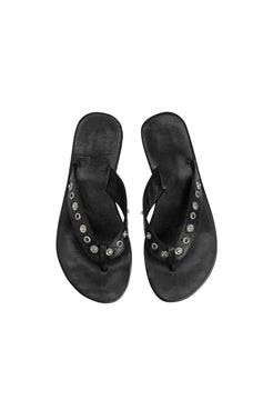 The Iro Studded Thong adds a modern edge to a classic silhouette. Featuring eyelet-studded straps and a slim thong style, atop a cushioned leather footbed. The Iro effortlessly blends studded detailing with minimalist design. Our pick for every wardrobe.